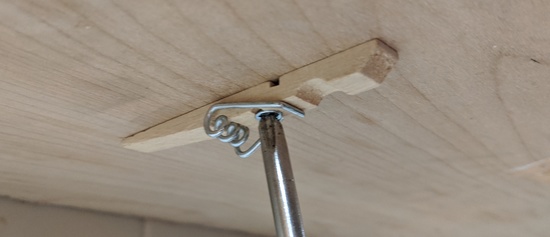 Then I screwed through it into the shelf above, making sure to use a screw short enough that it wouldn't poke through: