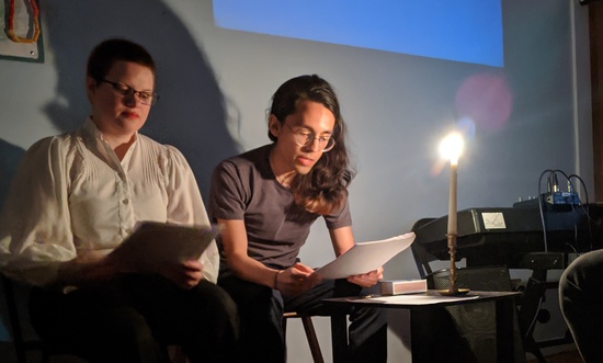 About two weeks out I wrote transition words and picked (what I thought) were final readings, and sent around a draft to people for review. Al gave me an enormous number of good suggestions, and in response I completely swapped around the order of songs and wrote new transitions that better showed how everything fit into a coherent whole. Al also found new first-person readings to replace the adapted version of the World on the Brink readings we'd been intending to use. This was incredibly useful, and the to top it off they volunteered to MC, which was awesome.
