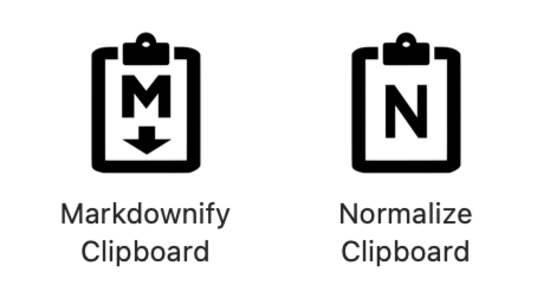 What I want is essentially the subset of HTML that can be represented in Markdown. So I automated this! I made a Mac command that pulls HTML from the clipboard, passes it through pandoc twice (HTML to Github-flavored markdown to HTML), and puts it back on the clipboard. I also packaged it up as a status-bar app: