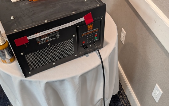 Now let's consider noise. I have an AirFanta 3Pro, and it absolutely works. On high, it clears cooking smoke from my kitchen very quickly. But, like all commercial air purifiers that clean significant amounts of air, when you put it on high it's very noisy. As in, "hard to have a conversation in the same room" noisy. Binder describes this as "audible fans", but that's a huge understatement when you're talking about running them on high. When filters are too noisy, people unplug them. Here's one I saw this weekend, just before I took the initiative to plug it back in: