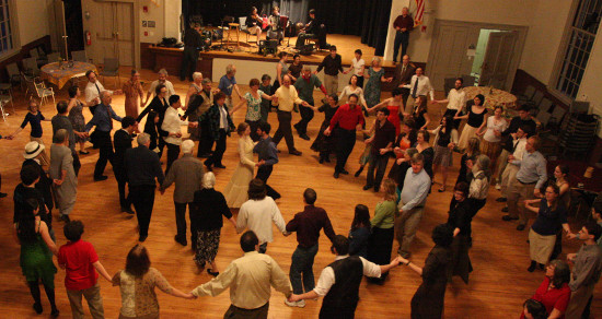 We also needed to find a band, caller, and person to run sound. We had worked at a dance and music camp the previous summer, cooking and washing dishes, and some of our crewmates had a band which we liked, so they were a clear choice. The dance organize who had suggested the hall to us was also a sound engineer, and we asked if they would run sound for us. For finding callers we knew various ones socially or by reputation and I remember asking a few until I found one who was free. [4] It was good that we ended up with someone who had done many weddings before because they could look at our plans for timing at let us know whether they were realistic. It's probably helpful to have at least one person who can give feedback on timing, though it doesn't have to be the caller.