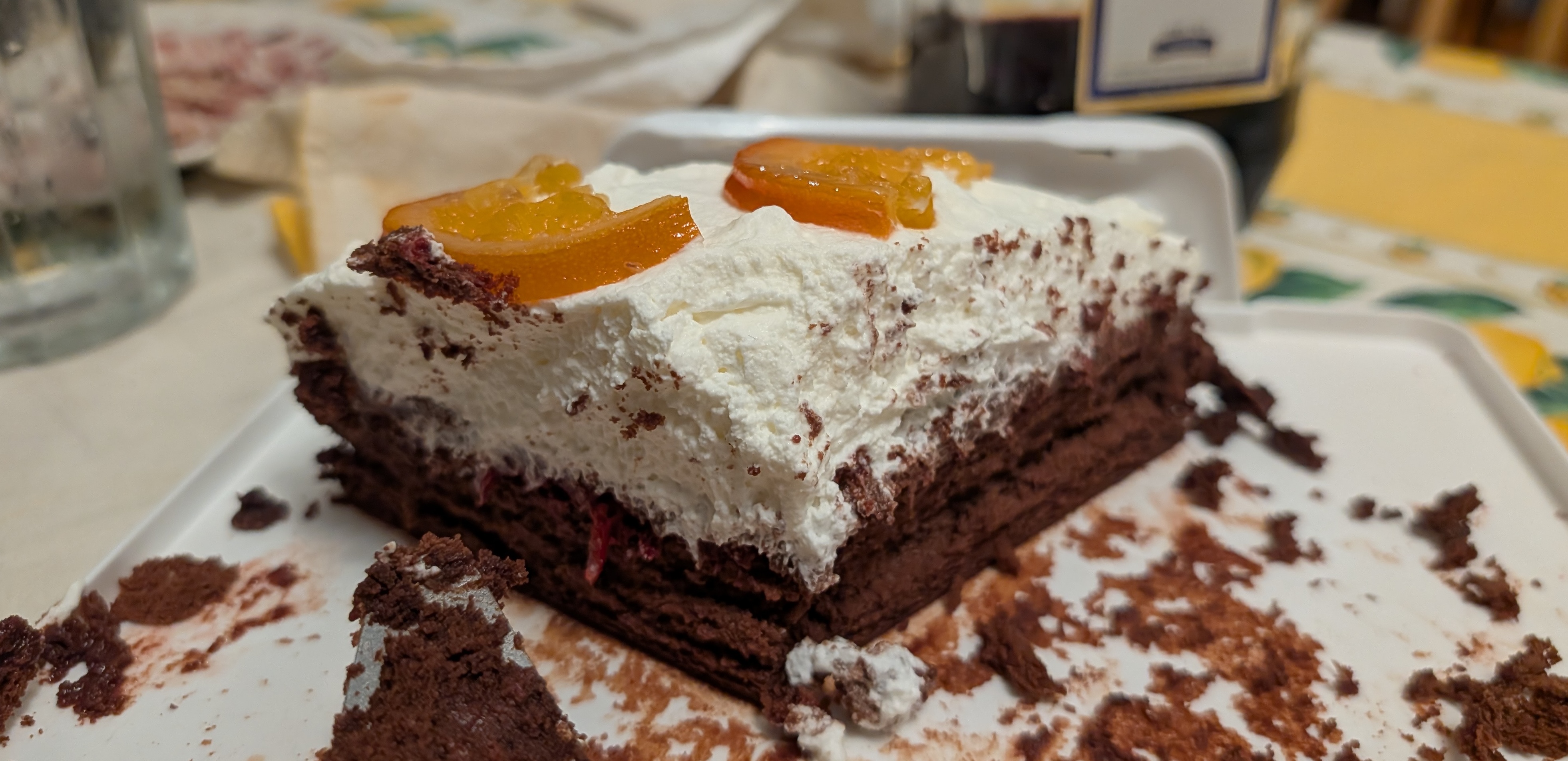 Desserts are usually too sweet. I want them to have enough sugar that they feel like a dessert, but it's common to have way more than that. Some of this is functional: in most cakes the sugar performs a specific role in the structure, where if you cut the sugar the texture will be much worse. This means that the cake layers will often be sweeter than I want for the average mouthful, and adding a layer of unsweetened whipped cream brings this down into the range that is ideal. It's good in helping hit a target level of sweetness without compromising texture.